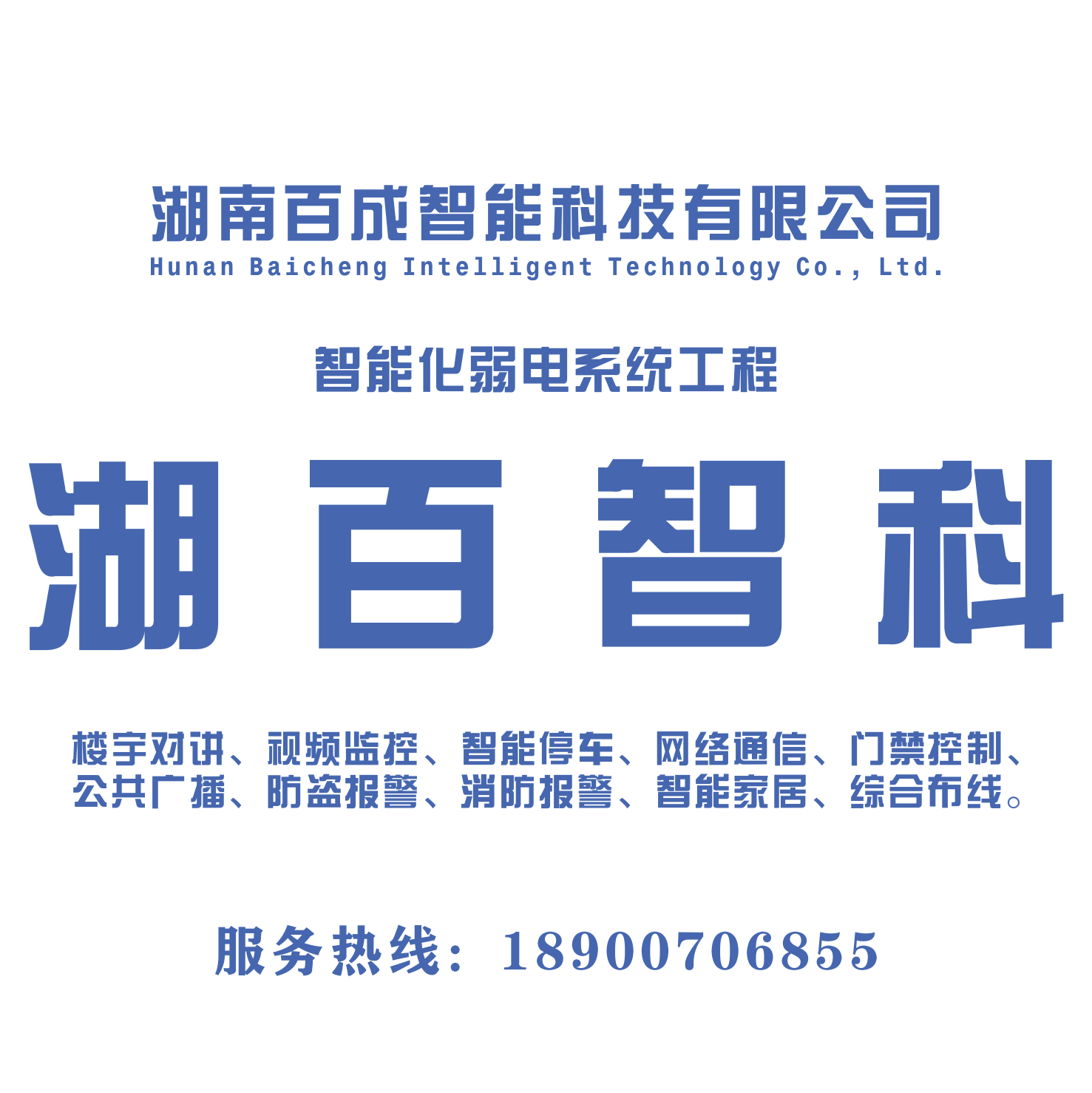 湖南百成智能科技有限公司 - 專業從事智能化技術、電子產品、網絡技術的研發、軟件開發、信息系統集成服務及智能化建筑安全環境締造的企業。 湖南百成智能科技有限公司業務范圍包括計算機網絡系統、樓宇對講和設備自動控制系統、視頻監控系統、智能停車系統、智能化集成系統、智能家居系統、安全防范系統、一卡通系統、門禁系統、背景音樂系統、多媒體數字會議系統、視頻點播系統、智能化小區綜合物業管理系統、智能照明系統、信息發布系統、音響控制系統、消防報警系統、消防應急照明和疏散提示系統、大屏顯示系統、綜合布線系統、各行業專有信息化系統、計算機技防系統、機房建設、建筑設施能源管理、通信系統、辦公自動化系統、架線和管...
